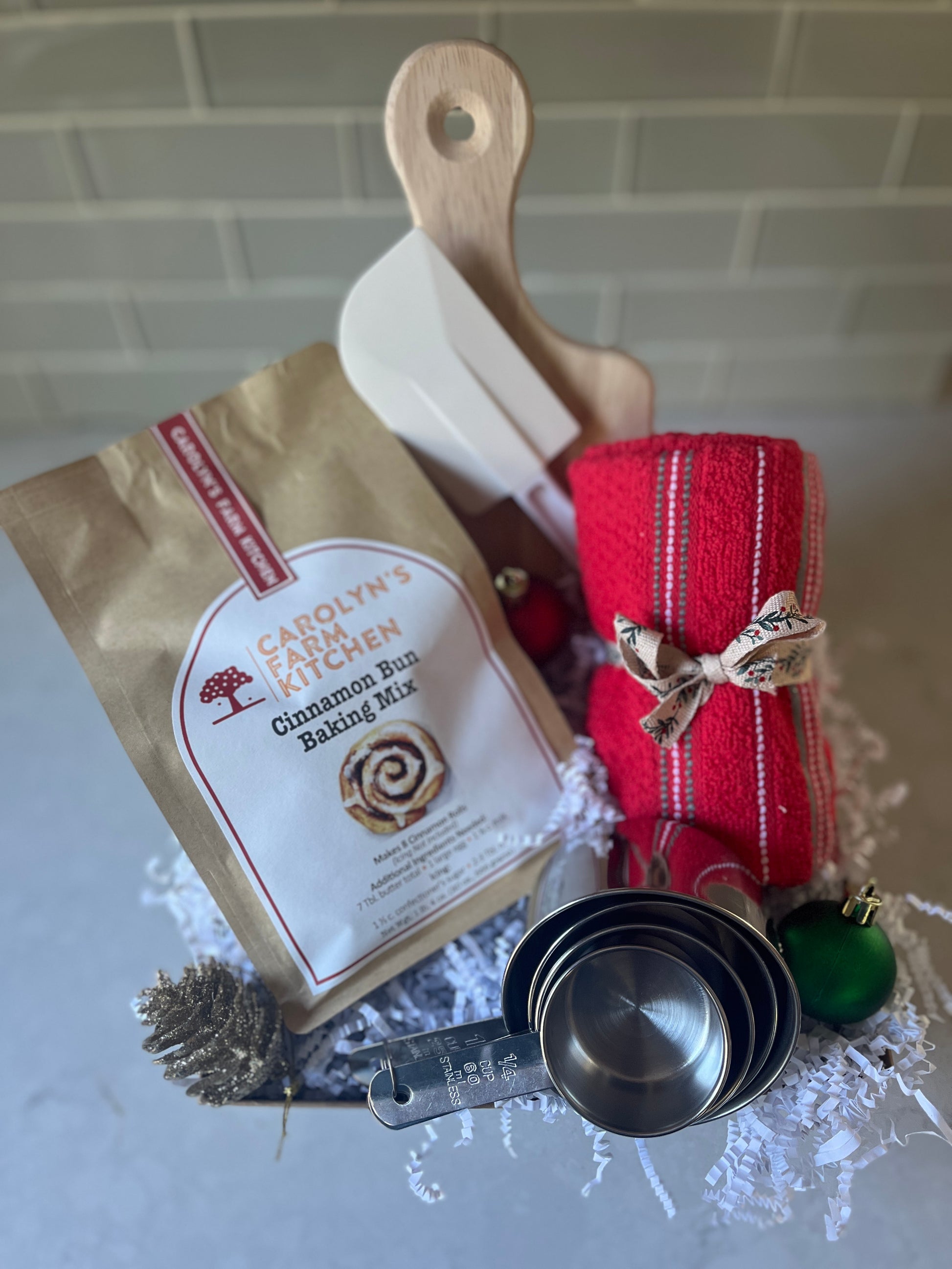 They will be baking spirits bright with this basket filled with everything to warm their kitchens and their hearts.