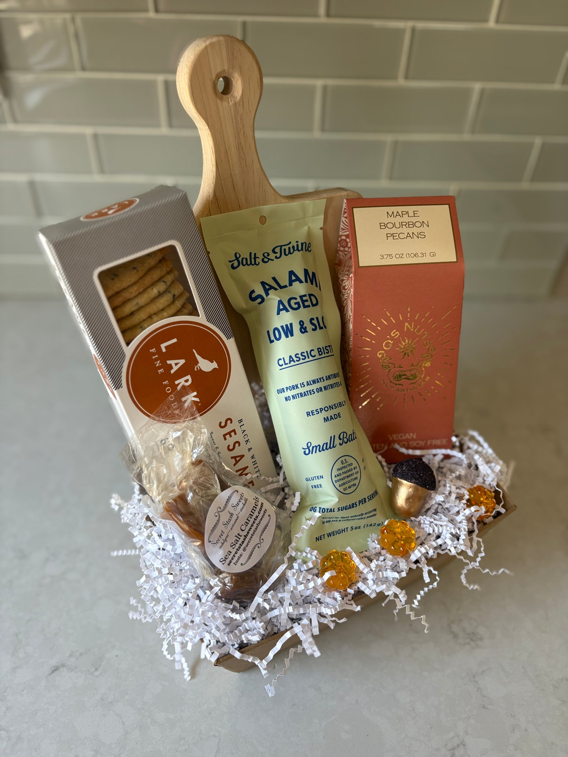 Ready to host or enjoy a little charcuterie on the couch? Our Just Add Cheese basket is the perfect solution. This carefully curated collection is packed with gourmet snacks, a versatile cutting board, and other savory treats—all from talented local Massachusetts artisans. Just add your favorite cheese, and you're ready to go!